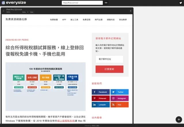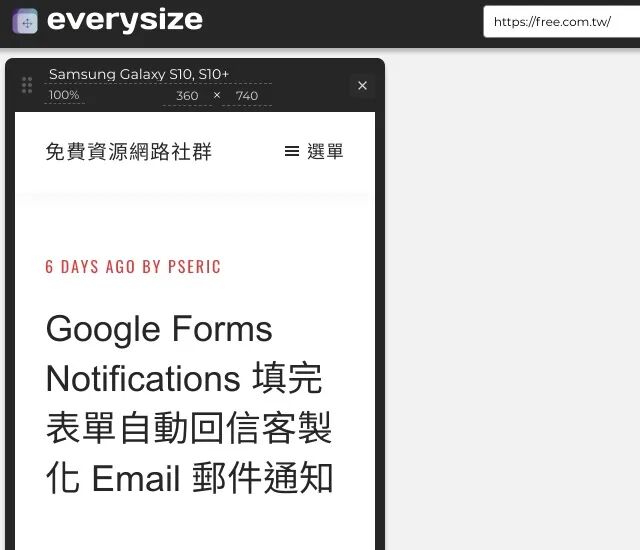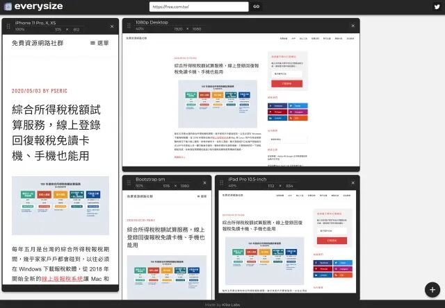 本文要介绍的「everysize」可以检查你的响应式网页在各种尺寸设备下的显示效果,操作方式也很简单,只要输入要测试的网址就能使用,无需额外下载或安装软件,也不需要手动调整浏览器视窗大小。