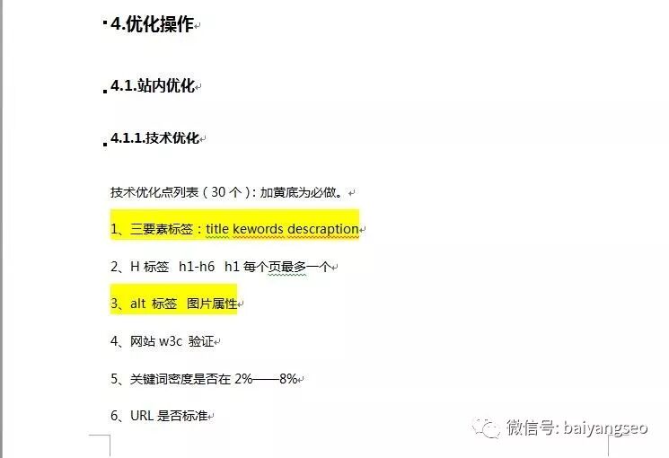这里主要是技术做,看技术用的什么语言,你装的什么系统哈。主要在SEO站内考虑进去,站内有哪些呢我截个图,30个要素点,可以在公众号下面菜单栏选关于白杨,点白杨圈子,进入我的知识星球里有。