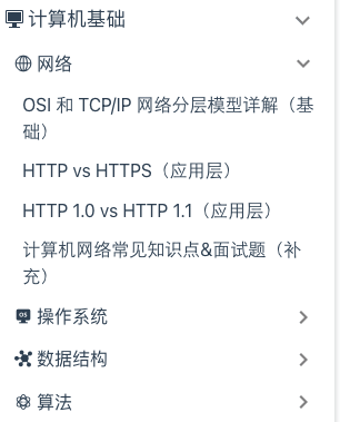 下图是这个项目在线阅读版的目录,内容涵盖面试准备、Java、计算机基础、数据库、开发工具、系统设计、分布式......。