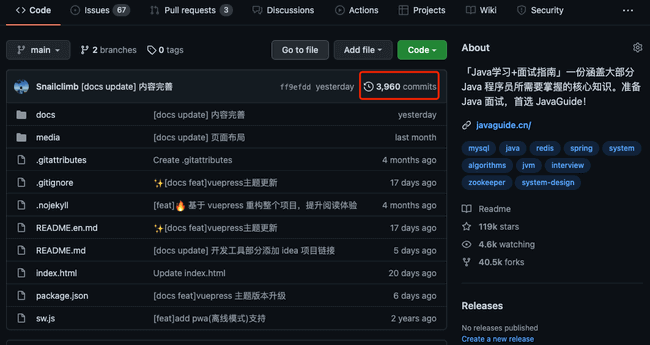 从 3452 commits 到 3960 commits,不算多不算少。用心维护,真心希望能够提供帮助给需要的小伙伴。