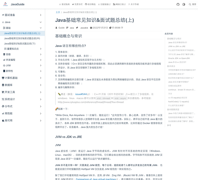 Github 地址:https://github.com/Snailclimb/JavaGuide。