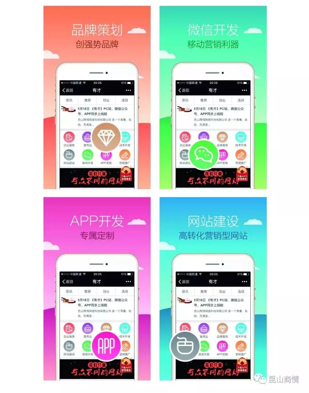 昆山商情网络科技有限公司专注于为企业提供中高端网站建设、优质电子商务解决方案、微信开发、APP定制、软件开发、代运营、品牌设计,营销策划等服务。