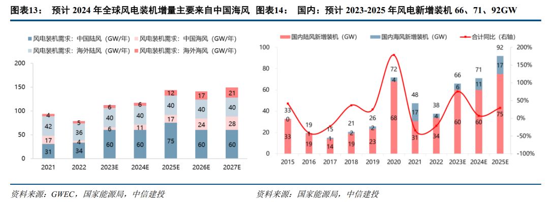 预测二:2024年全球风电装机增量来自国内海风,主机盈利或具备向上弹性