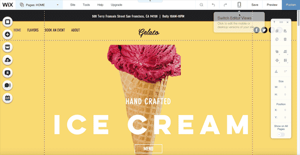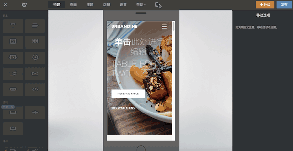 6、点击手机图标选择移动,可以像Wix一样切换到响应式主题进行编辑。