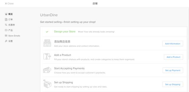 5、如果想开网店,可以点击店铺,添加商铺、产品、付款方式等信息。