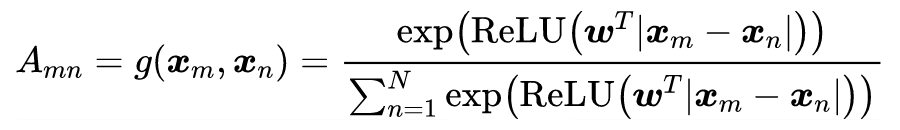 其中,激活函数 ReLU 保证了是非负的。softmax 对的每一行进行规范化。权向量通过最小化以下损失函数来更新: