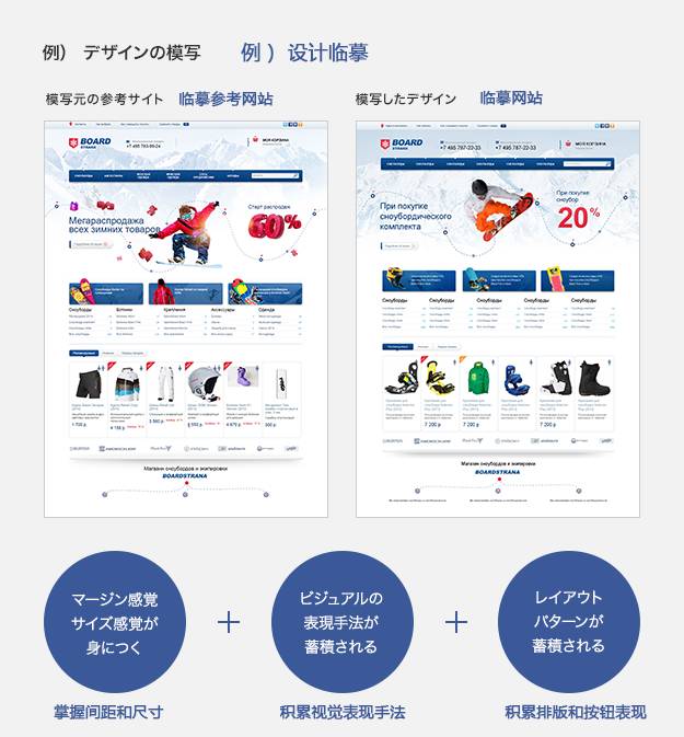 踏踏实实地进行临摹,对于积累更多表现手法来说是最有效果的。不是将参考网站截图,直接在上面进行临摹,而是以完全再现其质感和字号等元素为目标,一变观察,一变测量,试着做出一模一样的内容。虽然很浪费时间,但坚持三个月,就能明显地发觉自己积累了很多表现手法。重要的事情要再说一遍,这个方法是非常非常有效的。