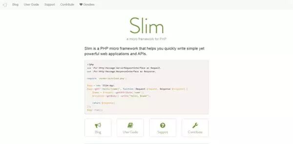 Slim是一个PHP微框架,可以帮你简单快速地编写强大的网页APP、API。它包括了HTTP路由功能、PSR-7支持等等。