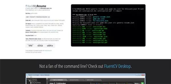 在HackMyResume的帮助下,你可以使用命令行来设计自己的简历。你可以使用Markdown和JSON来编写,并且输出为Word、HTML、PDF、LaTeX、纯文本等多种格式。HackMyResume是基于Node.JS来构建的,并且兼容OSX、Windows和Linux三大主流平台。
