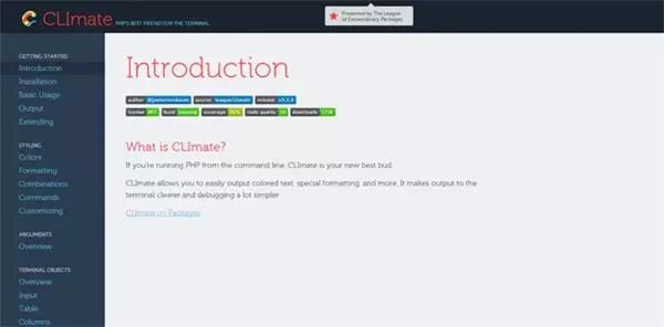 如果你想在命令行下操控PHP那么CLimate绝对是一个必备的工具,它可以让你轻松地输出彩色的文本、特殊的格式。