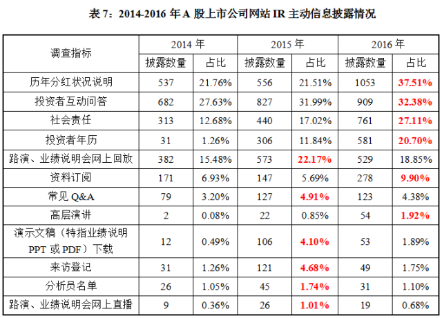 (二)公司基本资料披露最多,投资者联系方式披露明显增加