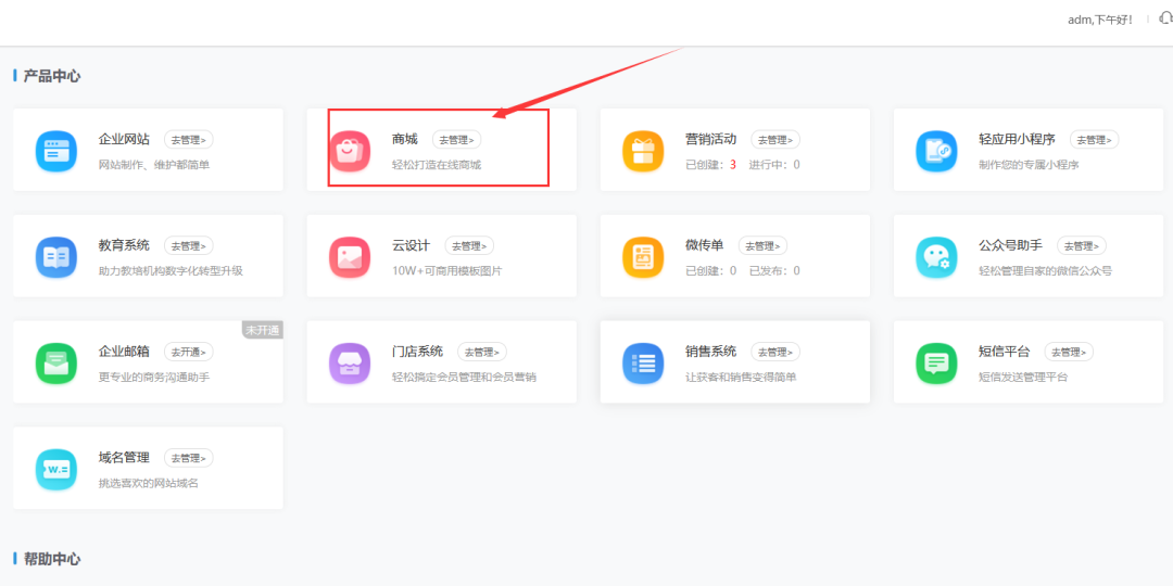 产品包含:网站建设,商城,小程序,门店会员系统,教育系统,销售系统,H5互动营销,为海量中小企业用户提供优质的互联网产品与服务。