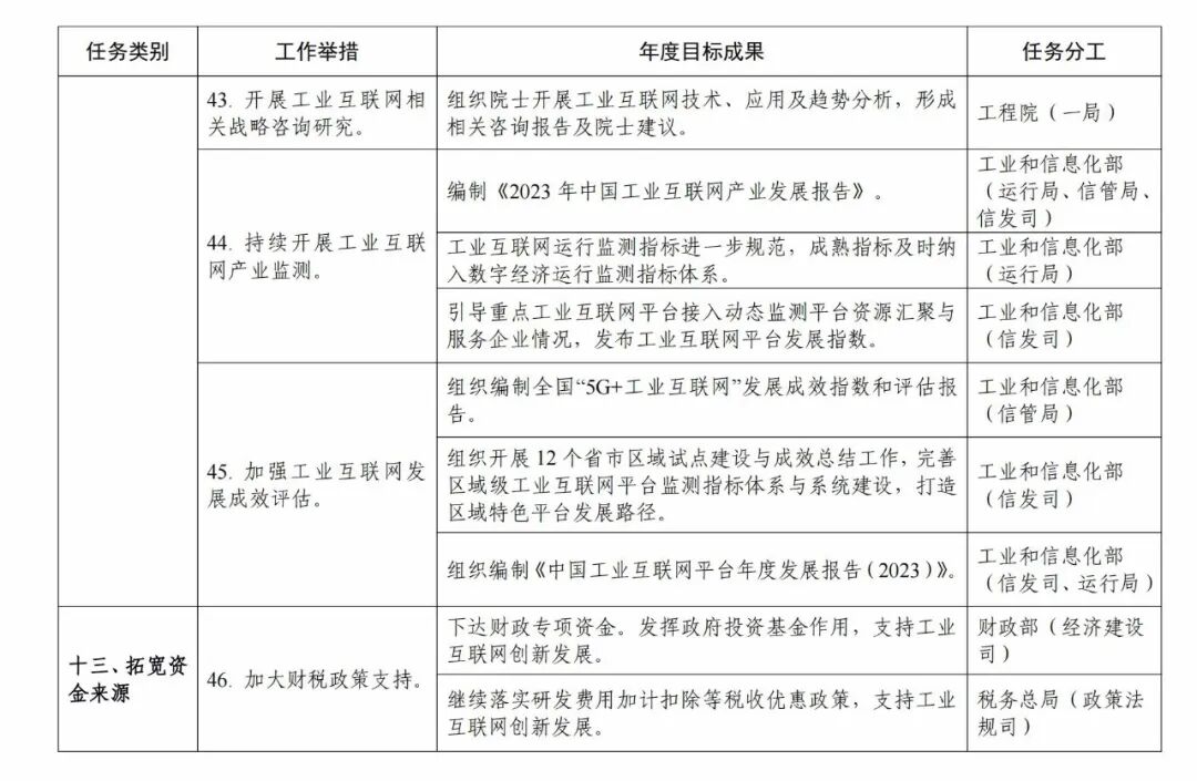 6月21日,工信部印发《工业互联网专项工作组2023年工作计划》。工作计划围绕政策体系、基础设施、创新体系、融合应用、产业生态等方面提出11项重点行动,54项具体举措。