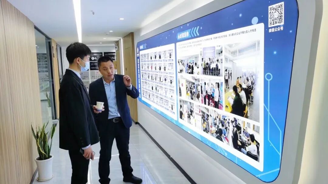 实训中心正式营业后,张老师带领到访企业参观的身影遍布实训中心的角角落落,前台、数字科技展厅、实训室、文化墙……