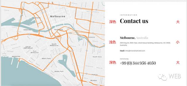 在文字排版上面通过字体的颜色和字体的大小进行对比,有效的突出了主要的信息~