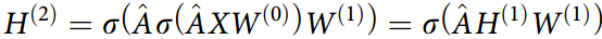 为激活函数。上式是经过一层GCN的输出,两层堆叠GCN可表示为: